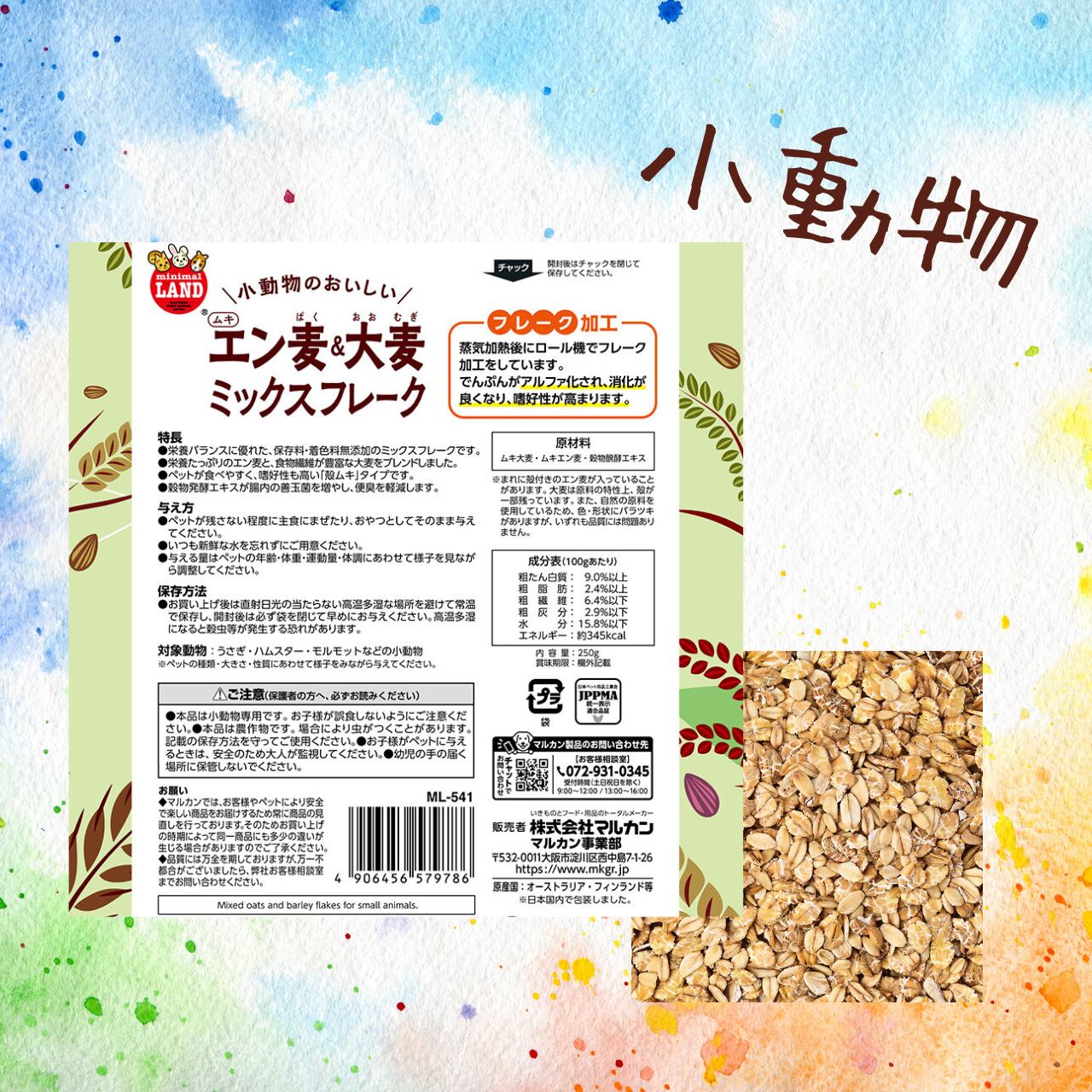小動物のおいしいムキエン麦&大麦 ミックスフレーク 250g(うさぎ、モルモット、デグー、チンチラ、ハムスター、リス、モモンガ)